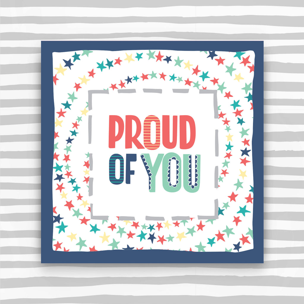 Proud Of You Greeting Card. Foiled and supplied cello wrapped or nested with a coloured envelope.