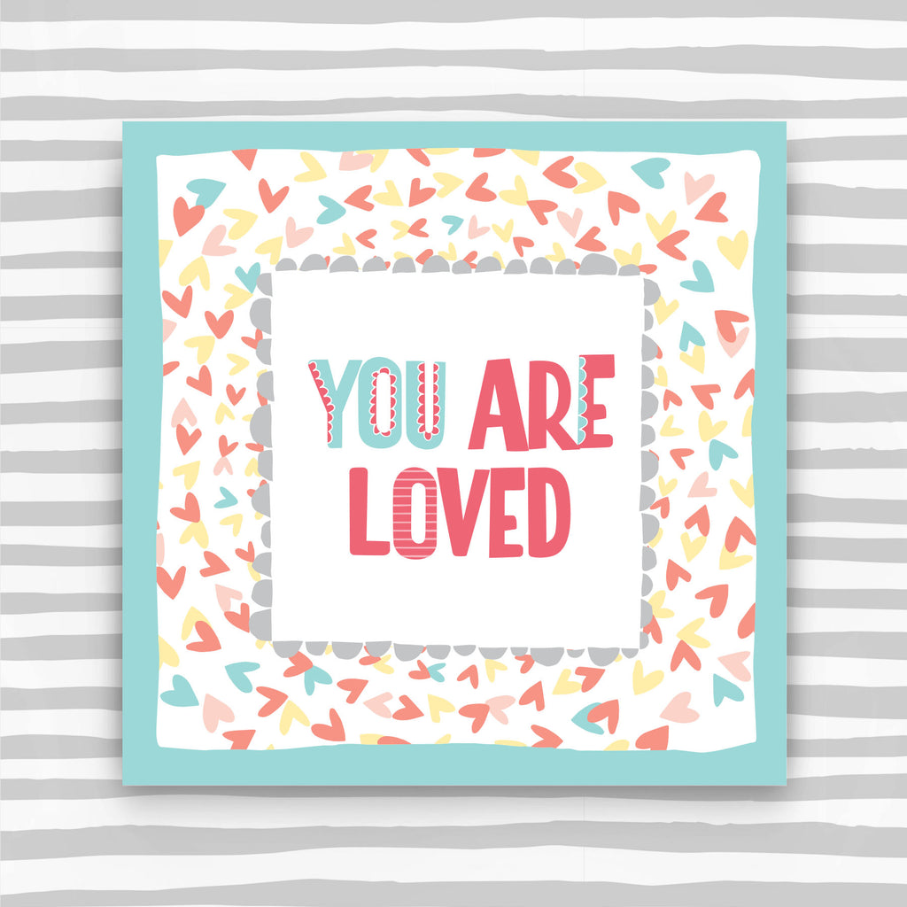 You are Loved Greeting Card. Foiled and supplied cello wrapped or nested with a coloured envelope.
