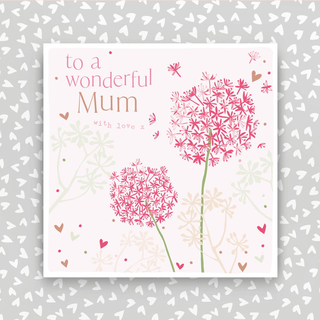 To a wonderful Mum Greeting Card. Foiled, embossed and supplied cello wrapped or nested with a white envelope.